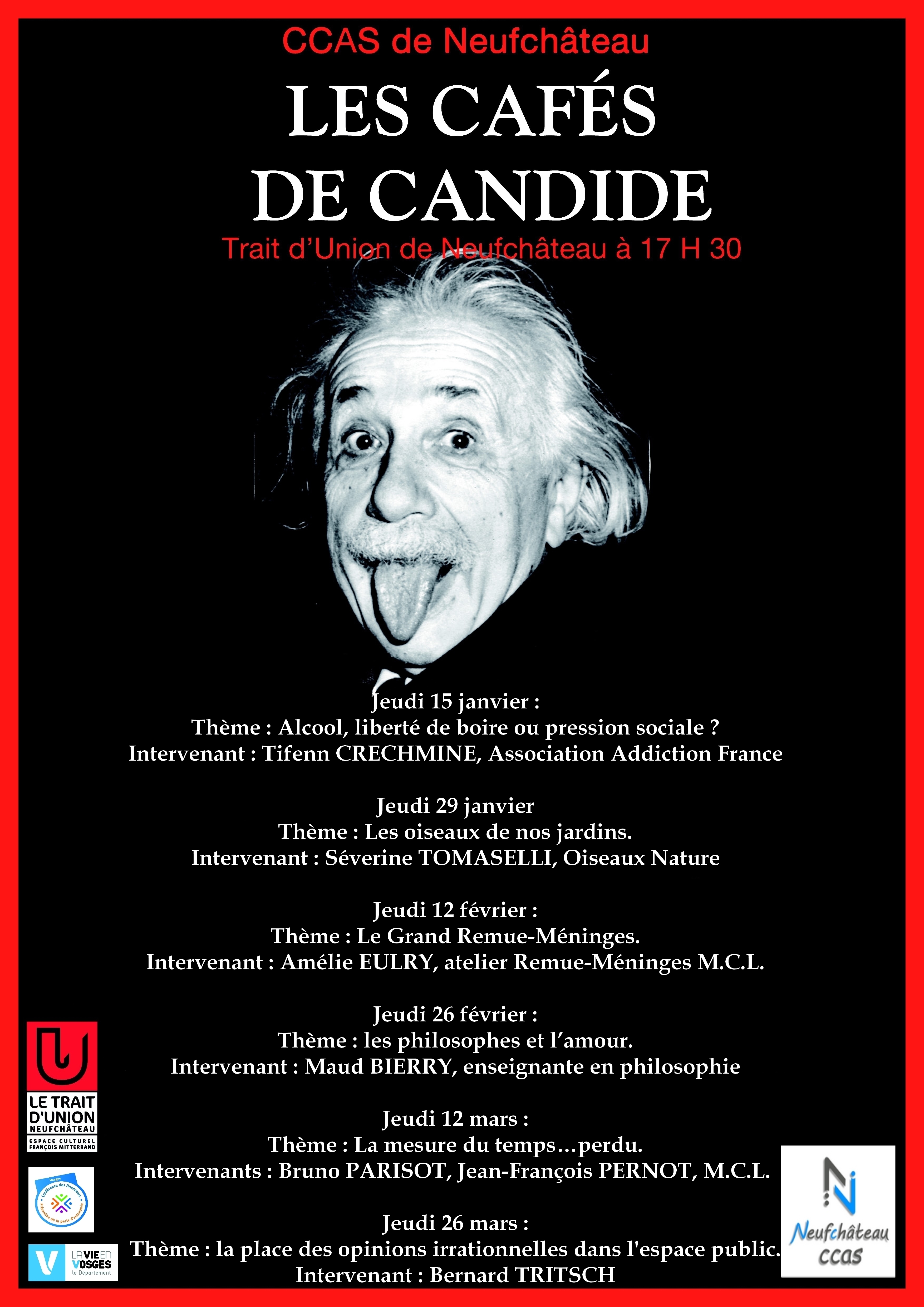 Le CCAS ( Centre Communal d’Actions Sociales) de Neufchateau propose une série de cafés-débats « Les cafés de Candide ».
